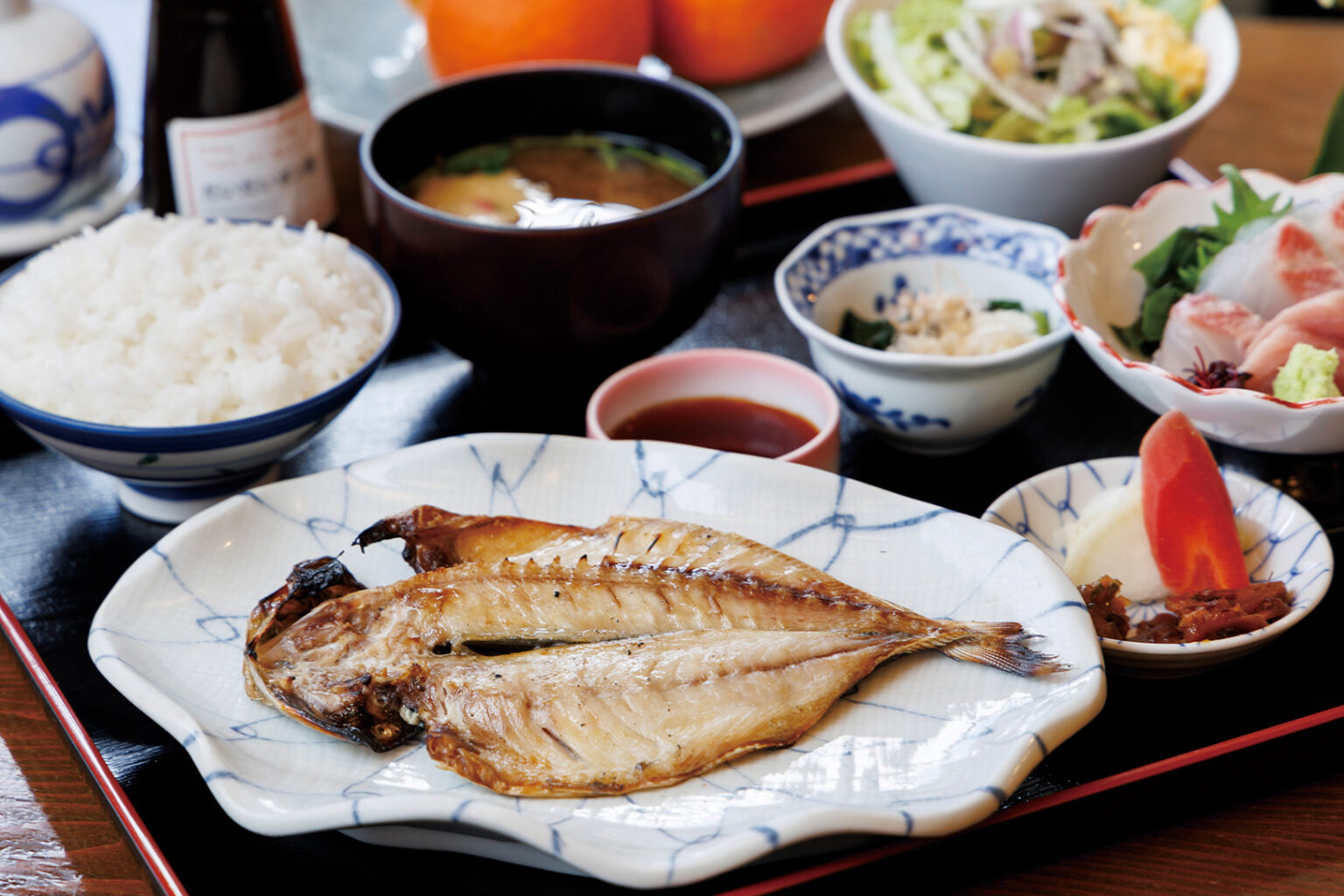 駿河湾・相模湾の幸に恵まれた熱海では多種多様な魚が捕れます。刺身や丼で鮮度抜群の鮮魚を楽しむのはもちろん美味なのですが、アジやタチウオ、イセエビなど干物で味わうのもおすすめです。イートインのできる干物店や、干物専門の食堂もあり、干物店が手掛けるレストラン「Himono Diningかまなり」では干物づくりも体験できます。