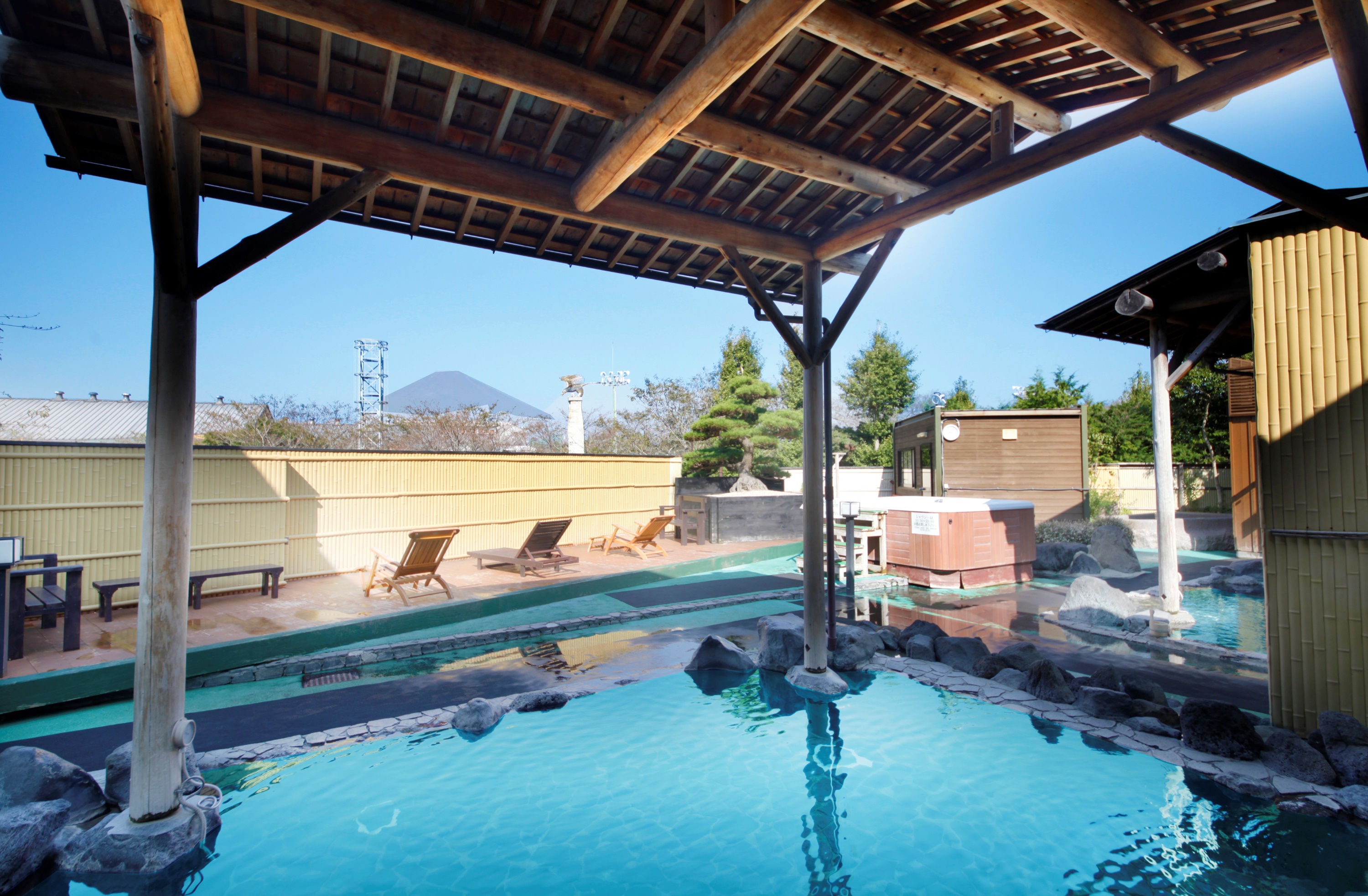 御殿場駅→(徒歩20分)ファーマーズ御殿場→(徒歩20分)御殿場駅→(時之栖シャトルバス25分+徒歩5分)お結びや ぶう→(徒歩5分)天然温泉気楽坊→(時之栖シャトルバス25分)御殿場駅