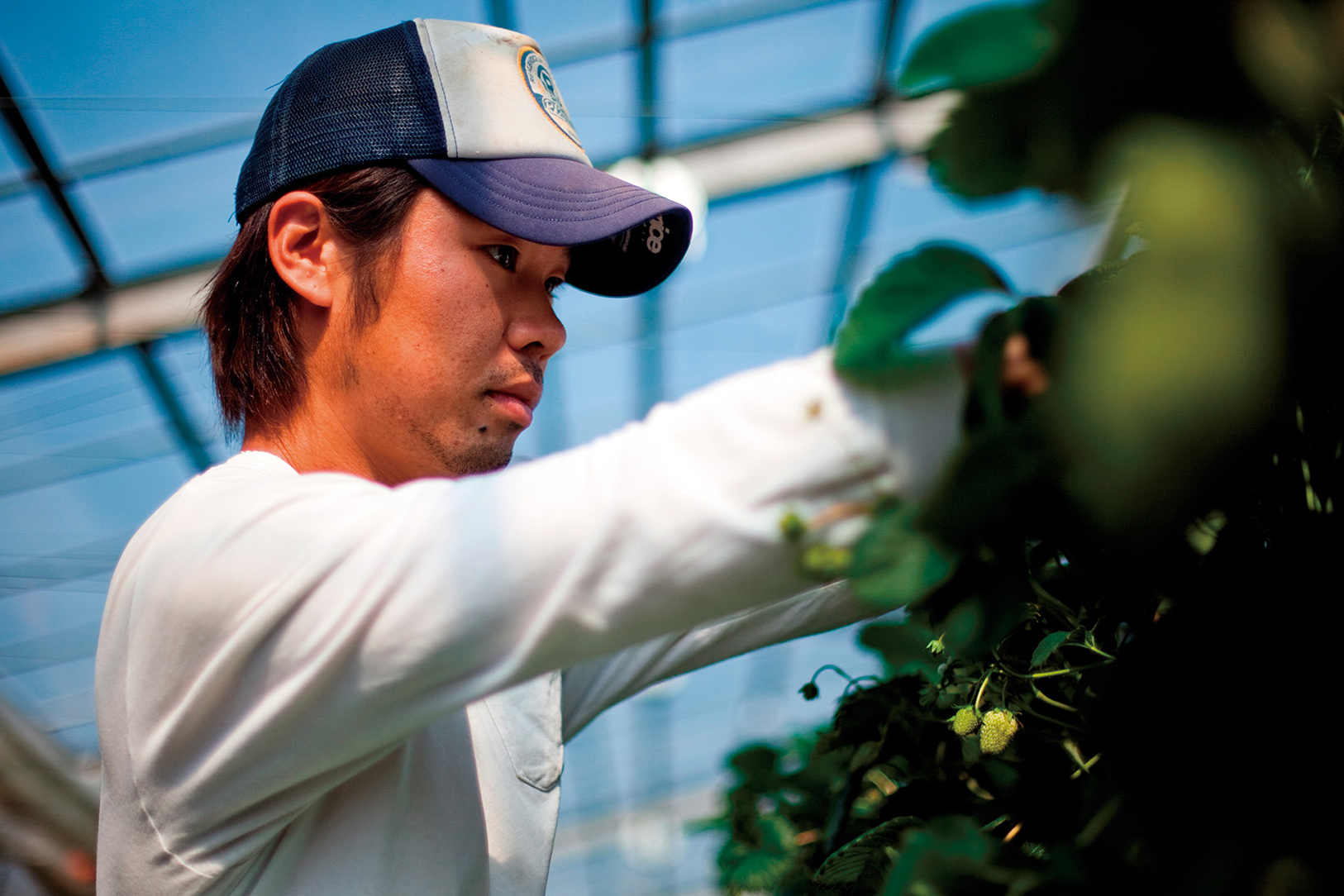 私たちが作るイチゴは赤い色が深いのが特徴。赤いイチゴは味もコクも豊かで、生食はもちろんスイーツなどにも幅広く使われています。とてもデリケートな植物のため、花と実にすべての力を注いで育てています。翌年に繋げるために根をさらに生やし、良い葉を出させるのも重要な仕事。気がつけばイチゴに合わせた生活スタイルになっています。