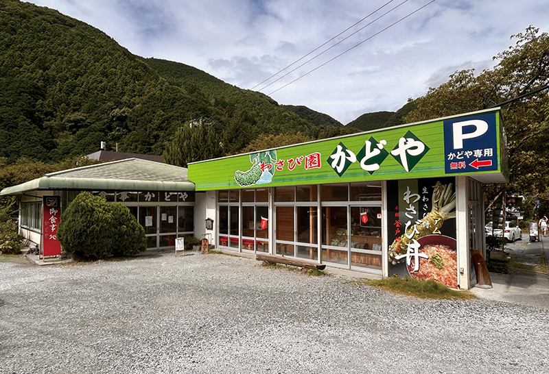 「わさび園かどや」は明治の初めから100年以上、4代に渡りわさびを作り続けています。伊豆天城山の湧水でじっくり1年半かけて育てたわさびの美味しさは格別で、「生わさび丼」としてご提供しています。生わさびの「香り」「辛み」「甘み」をぜひご賞味ください。店頭では生わさびやわさび漬け等も販売しています。