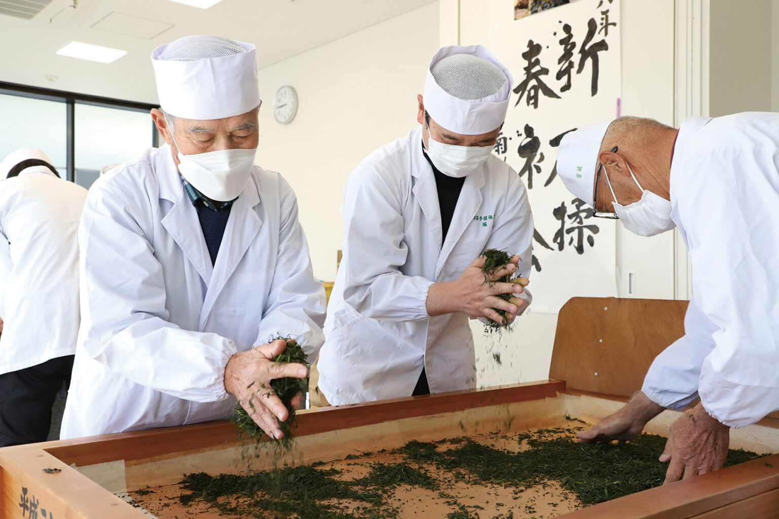 製茶作業の原点である「手揉み」。菊川市の手揉み保存会では、手揉み技術は茶文化継承に欠かせないと考え、技術の継承と深蒸し茶PRのため活動を行っています。san grams菊川店では、長年受け継がれた技術で生まれる「深蒸し菊川茶」を丁寧にお淹れしています。お庭を眺めながら、季節の移り変わりとともにお楽しみください。