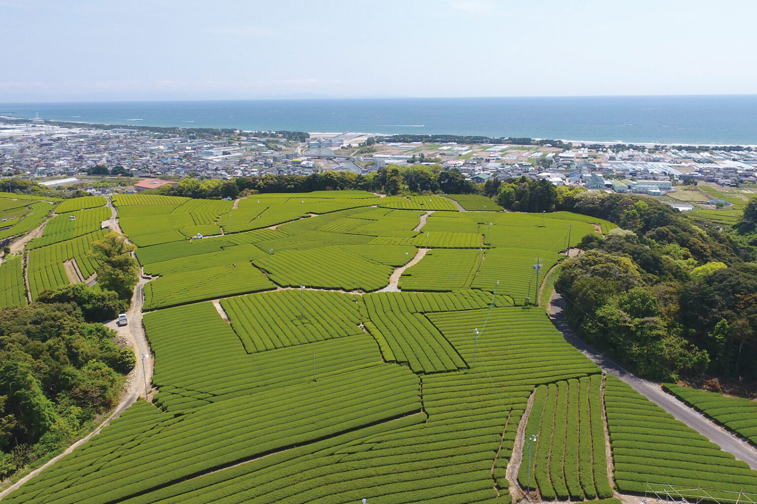 北には雄大な茶畑が広がる牧之原台地。南には駿河湾を望む変化に富んだ海岸線。そんな自然豊かな牧之原市は深蒸し茶発祥の地でもあり、茶園面積も県内一。荒茶の一大生産地です。沿岸部の砂浜は日本有数の海水浴場として知られ、静波海岸やさがらサンビーチには他県からも多くの人が訪れます。サーフスポットも点在し、日本初のサーフィン競技用人工造波施設「静波サーフスタジアム」も好評です。2009年に開港した「富士山静岡空港」のある牧之原市を起点に県内を旅するのもおすすめです。