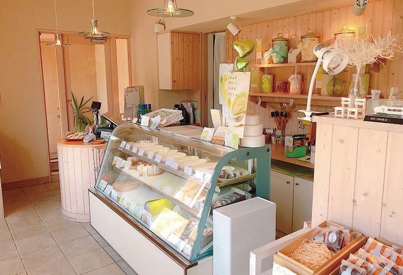 南伊豆町下賀茂温泉が「温泉メロン」発祥の地であり、温泉を熱源とするため年間を通し生産されています。「扇屋製菓」では、温泉メロンを仕入れ、さらに追熟し糖度14度以上ある甘くて芳醇なメロンスイーツを提供しています。メロン半玉分を使用したメロンパフェは、週末は早い時間に完売してしまうほど人気です。