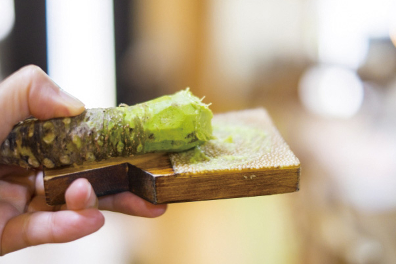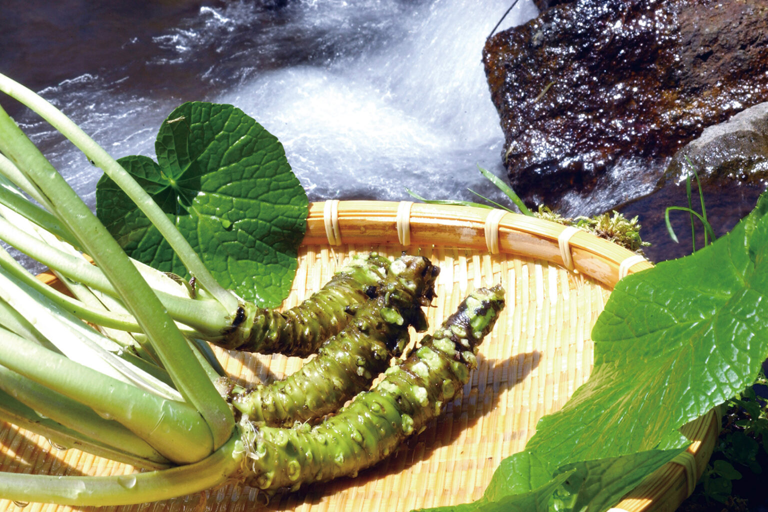 わさびは涼しい日陰を好む繊細な植物ですが、桃沢川の源流付近は理想的な環境です。愛鷹山の深い谷がわさび田を日差しから守り、山腹から湧き出る水には豊富な養分が含まれます。桃沢わさびは、ツンと鼻に抜けるような辛味の中に、ほのかな甘みを感じていただけるのが特徴です。ぜひ一度味わってみてください。