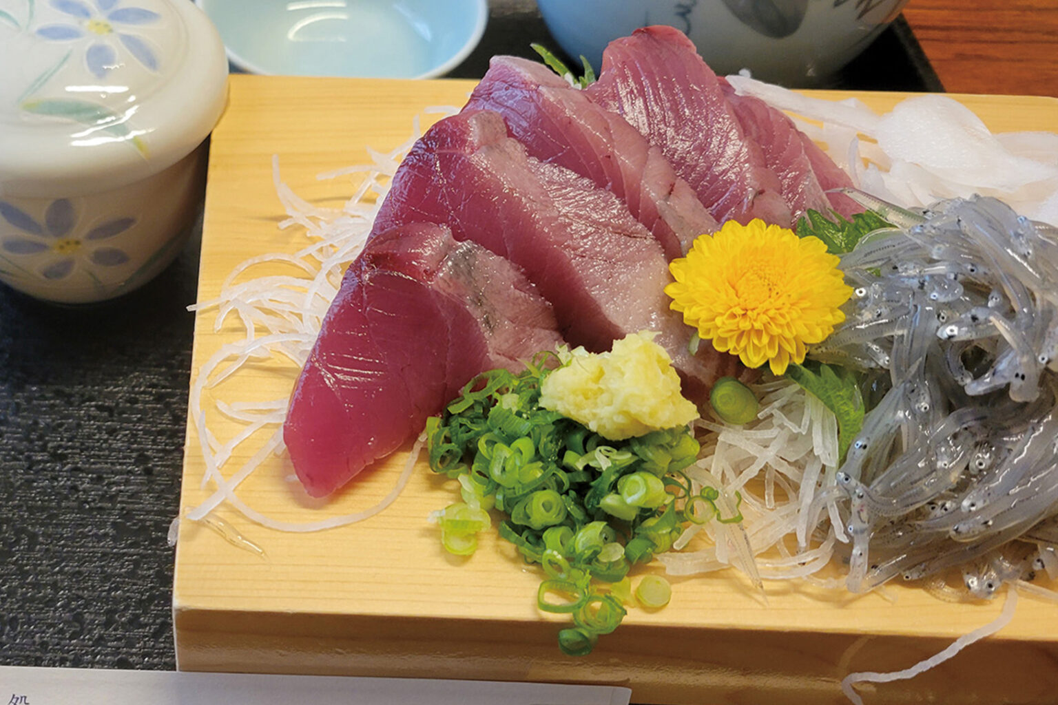 「浜一」の料理に使う魚は、御前崎港の漁協仲買人の資格を持つ若大将が目利き。極力その日に港に揚がった新鮮な魚を使うようにしています。一番人気は海鮮丼で、カマスやタチウオの天丼も好評です。御前崎生カツオは刺身定食や丼でどうぞ。鮮度の良さとモチモチとした食感をお楽しみください。