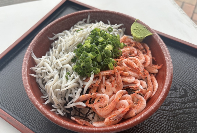 目の前の漁港で水揚げされた新鮮な桜えび料理を味わえる、由比港漁協直営のお食事処です。サクサク・ふわふわの桜えびのかき揚げを中心に、どんぶり・そば・うどんメニューを提供しています。土日は近隣だけでなく、県外からのお客様も多く行列になる人気ぶりです。由比ならではの海の幸をぜひご堪能ください。