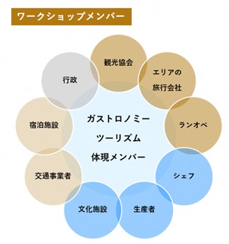 ワークショップはコンテンツの販売までを目的にしていますので、ガストロノミーツーリズムの要素に重要となるシェフ、生産者、文化施設の関係者だけでなく、旅行商品の販売や旅行実施の際に関係する事業者の皆様にもお集りいただいています。