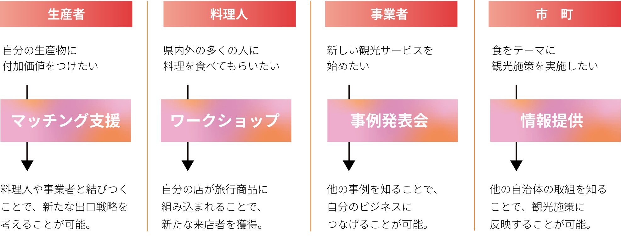 フォーラム会員に対して、ガストロノミーツーリズムに関する最新情報の提供やワークショップの開催等を行います。
