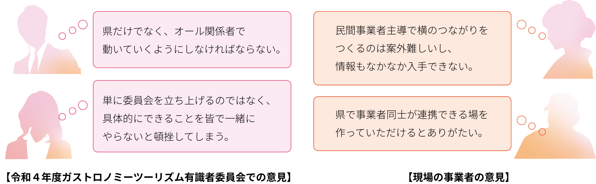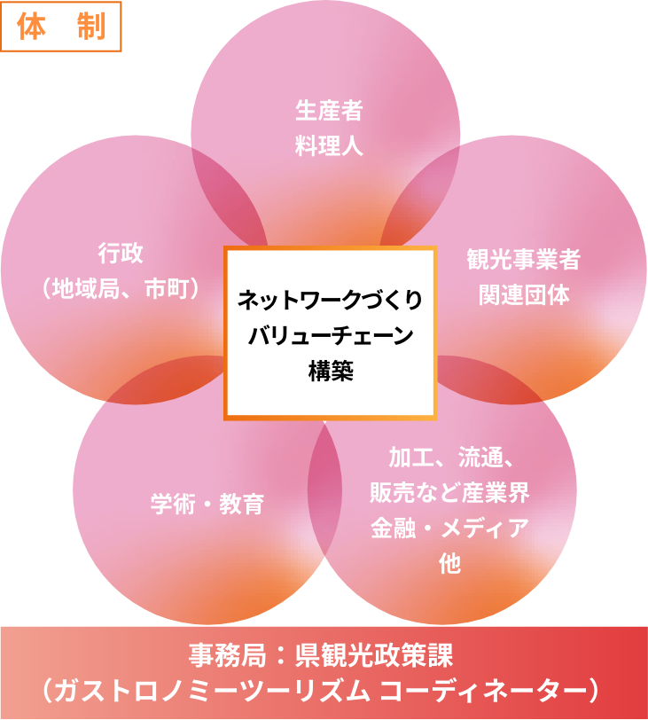 静岡県で他地域に負けないガストロノミーツーリズムを確立するためには、行政だけではなく、料理人、生産者、事業者をはじめとした関係者の連携が重要です。