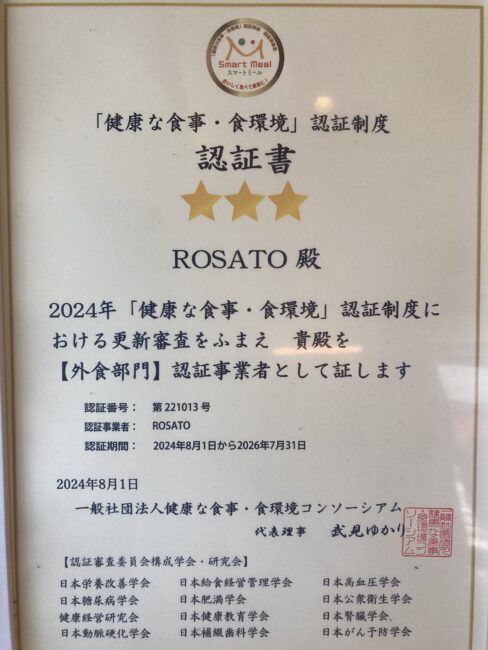 2022年に認証されたスマートミール3つ星メニューの2品目が厳しい審査に通り更新されました。