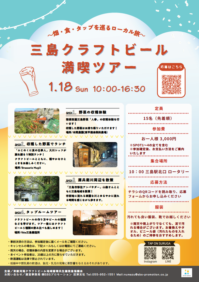 クラフトビールと旬野菜で巡る、三島の恵み満喫ツアー参加者募集