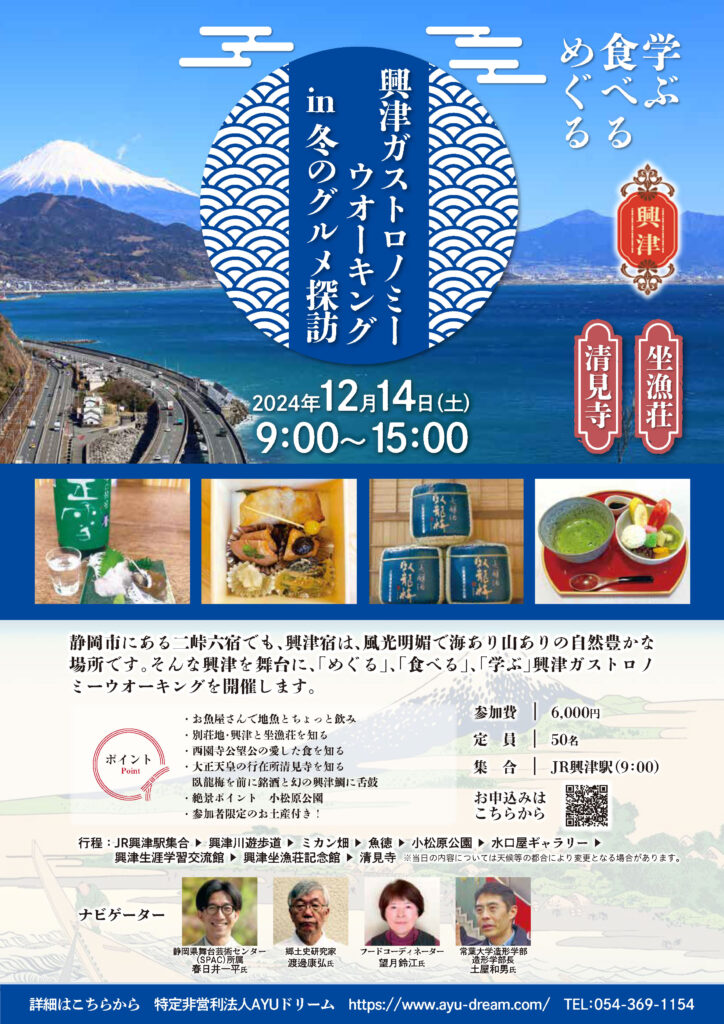 「興津ガストロノミーウォーキング㏌冬のグルメ探訪」興津ガストロノミーウォーキングを開催、募集いたします