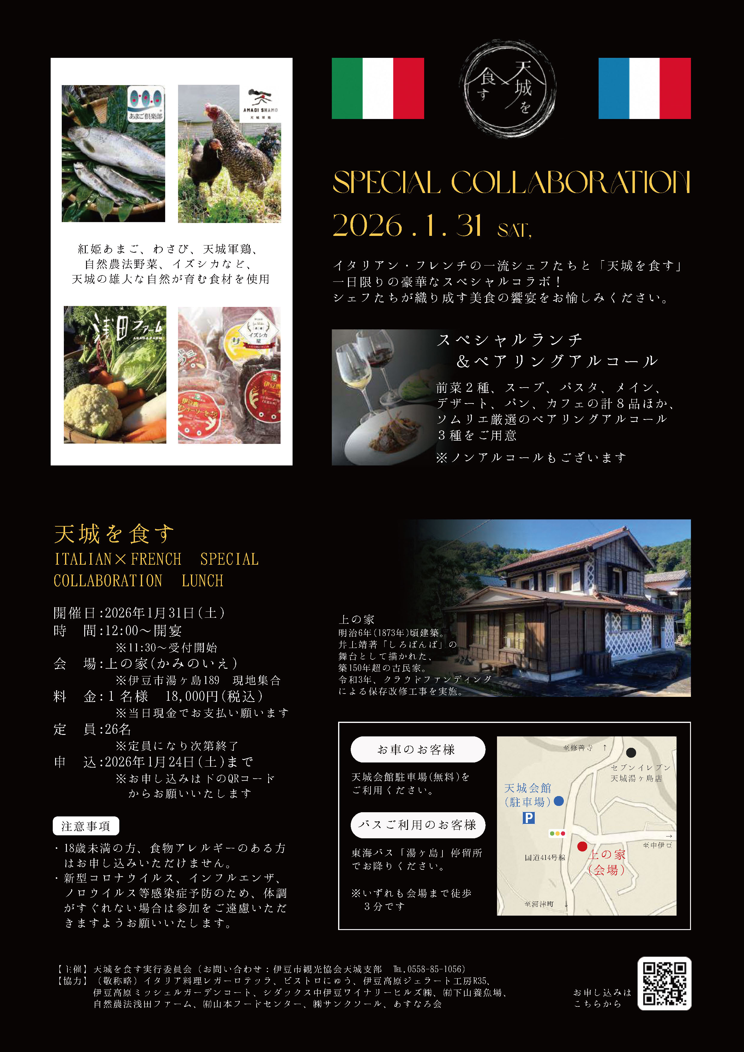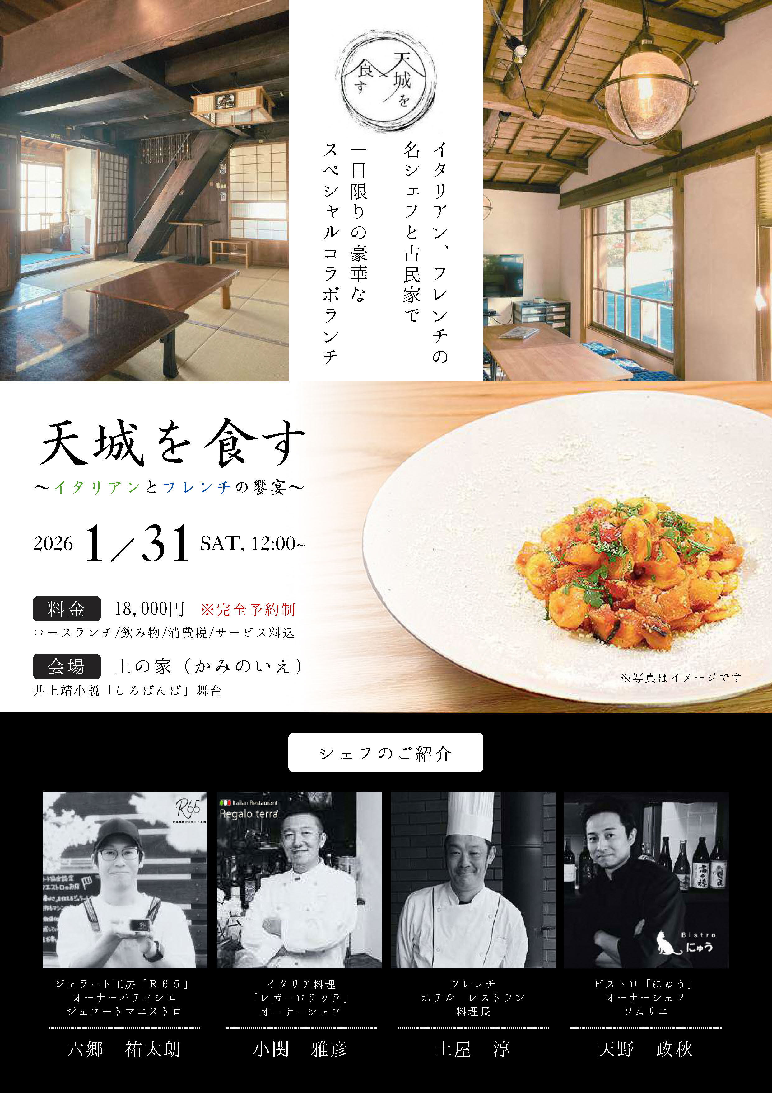 伊豆半島で活躍するイタリアンとフレンチのオーナーシェフたちが、一日限りのスペシャルコラボ。