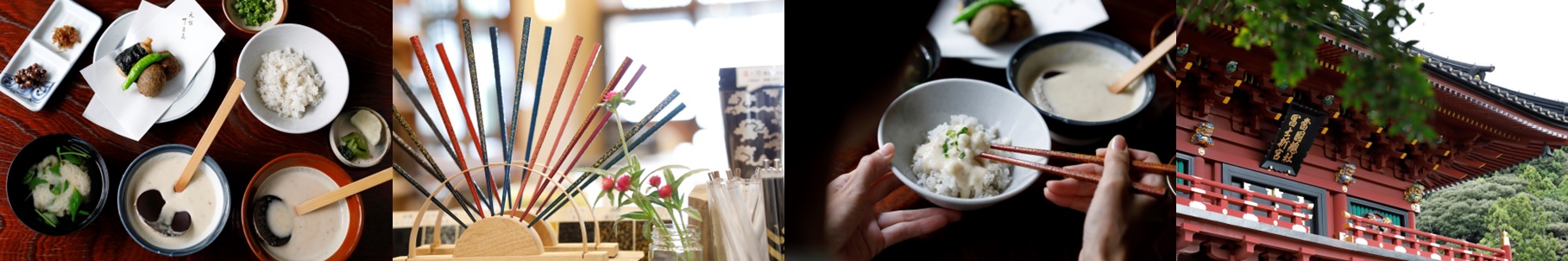 創業1596年。東海道五十三次20番目の宿場「丸子宿」に、東海道を行き交う人々をもてなしてきた「とろろ汁の丁子屋」があります。初代から場所を変えることなく人々を迎えてきた老舗。その佇まいは歌川広重の浮世絵に描かれている茅葺屋根の古民家の姿を今も残し、まるで江戸時代にタイムスリップしたかのような感覚にさせてくれます。東海道の歴史や自然薯栽培についてなど、丁子屋の14代目と自然薯づくりを継承する若手農家の杉田さんからのお話を聞きながら、昔ながらのとろろ汁をお召し上がりください。