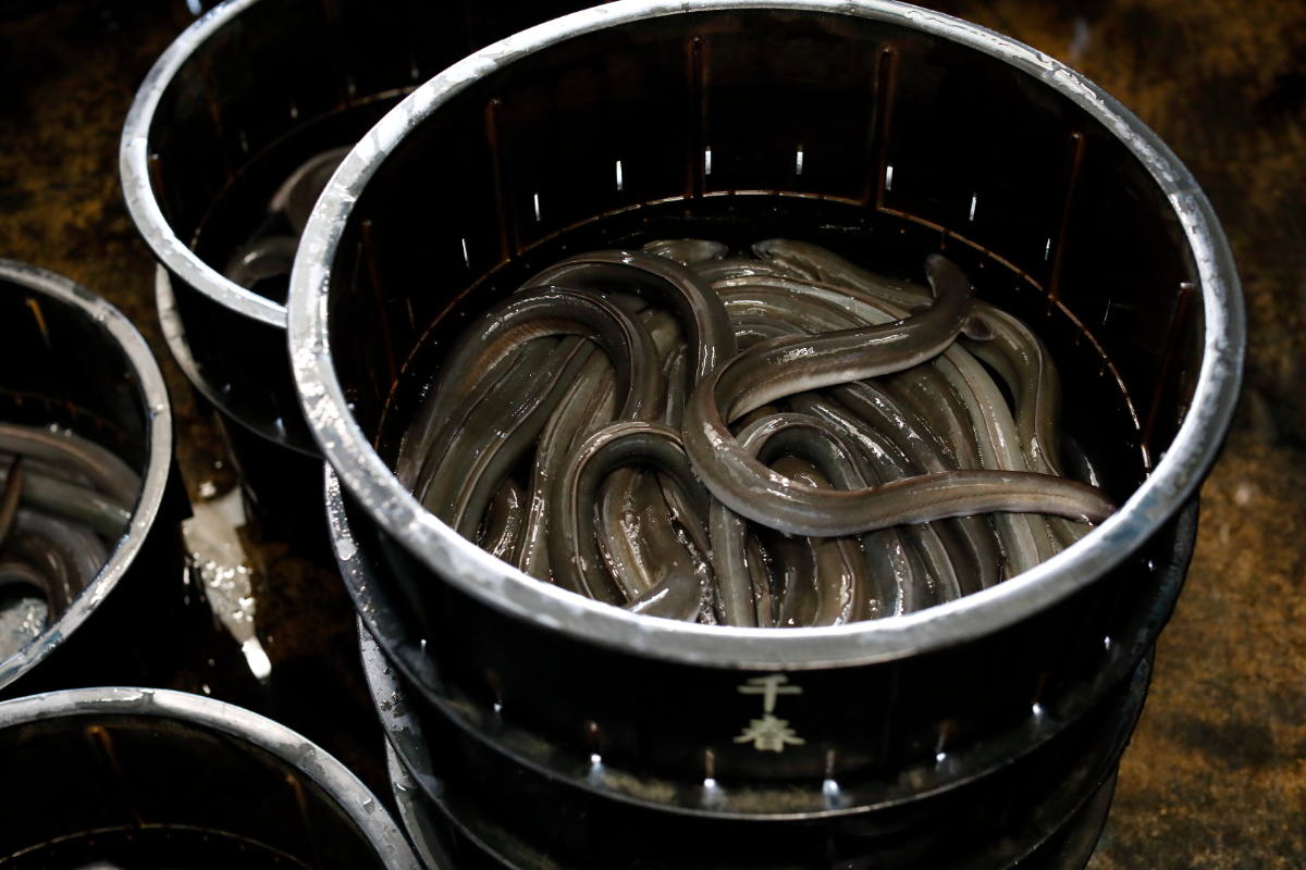 10面もの養鰻場で約20万匹の鰻を養殖している海老仙では、鰻に与えるえさにもこだわり、鰻の状態管理にも余念がなく、地元の料理人からも厚い信頼を得ています。
