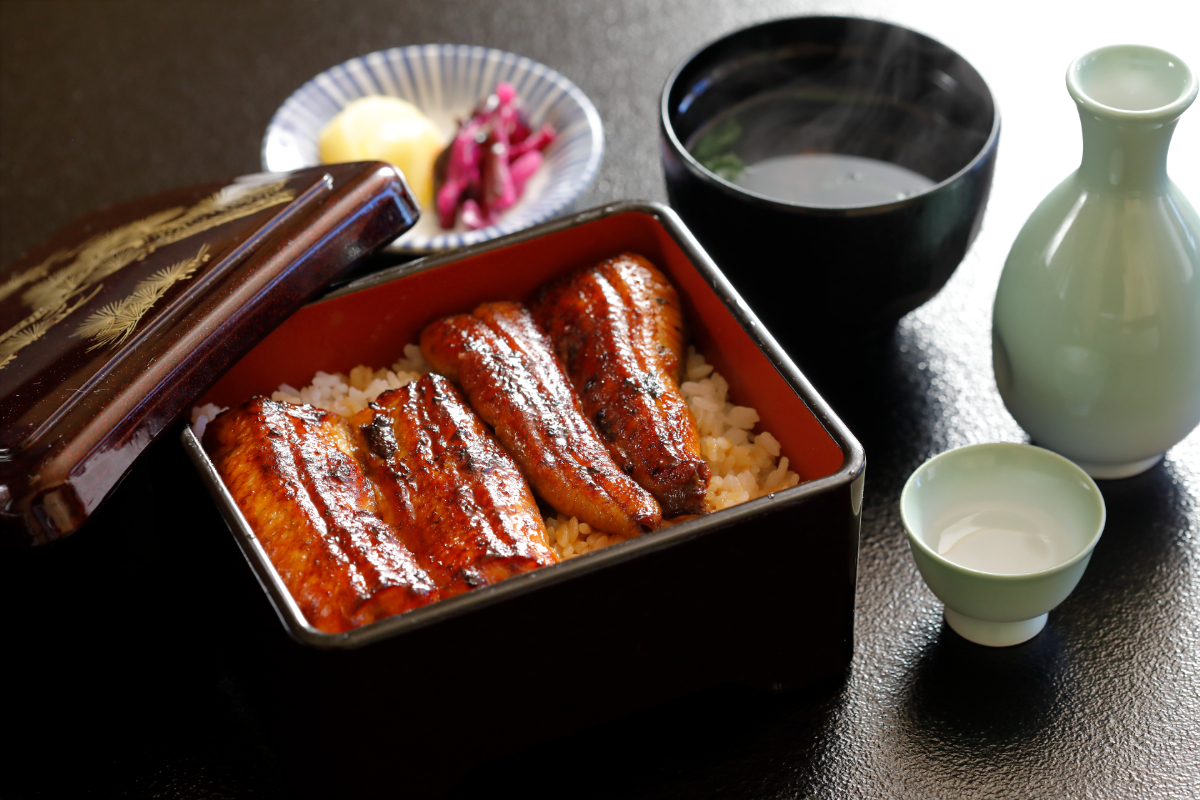 山本亭でいただく鰻は関東風の背開きで、一度白焼きにしてから蒸され、再び焼かれています。淡白でふっくらとした白焼きをいただけるのも一興。うな重は創業以来継ぎ足しで使用している秘伝のたれを使用し、少し甘めのたれが地元の人にも人気です。