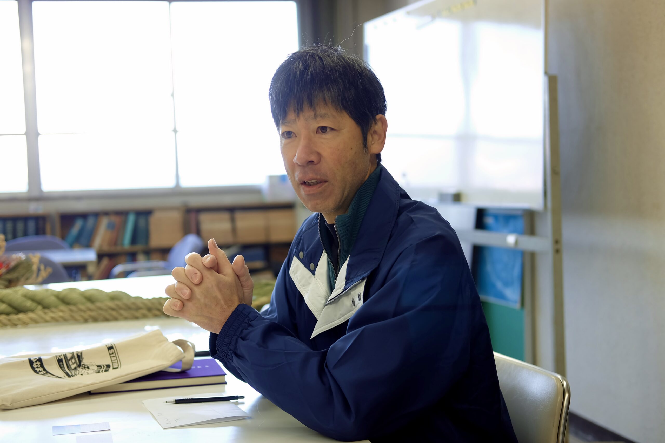 初島の文化や島民の暮らしに興味もあり、区長の宮下泉さんからのお話を聞きます。宮下さんは区長でもあり、初島漁業協同組合 代表理事組合長、初島区事業協同組合 理事長も兼任していて、さらに「磯料理みやした」の料理店も営む、スーパー区長です。