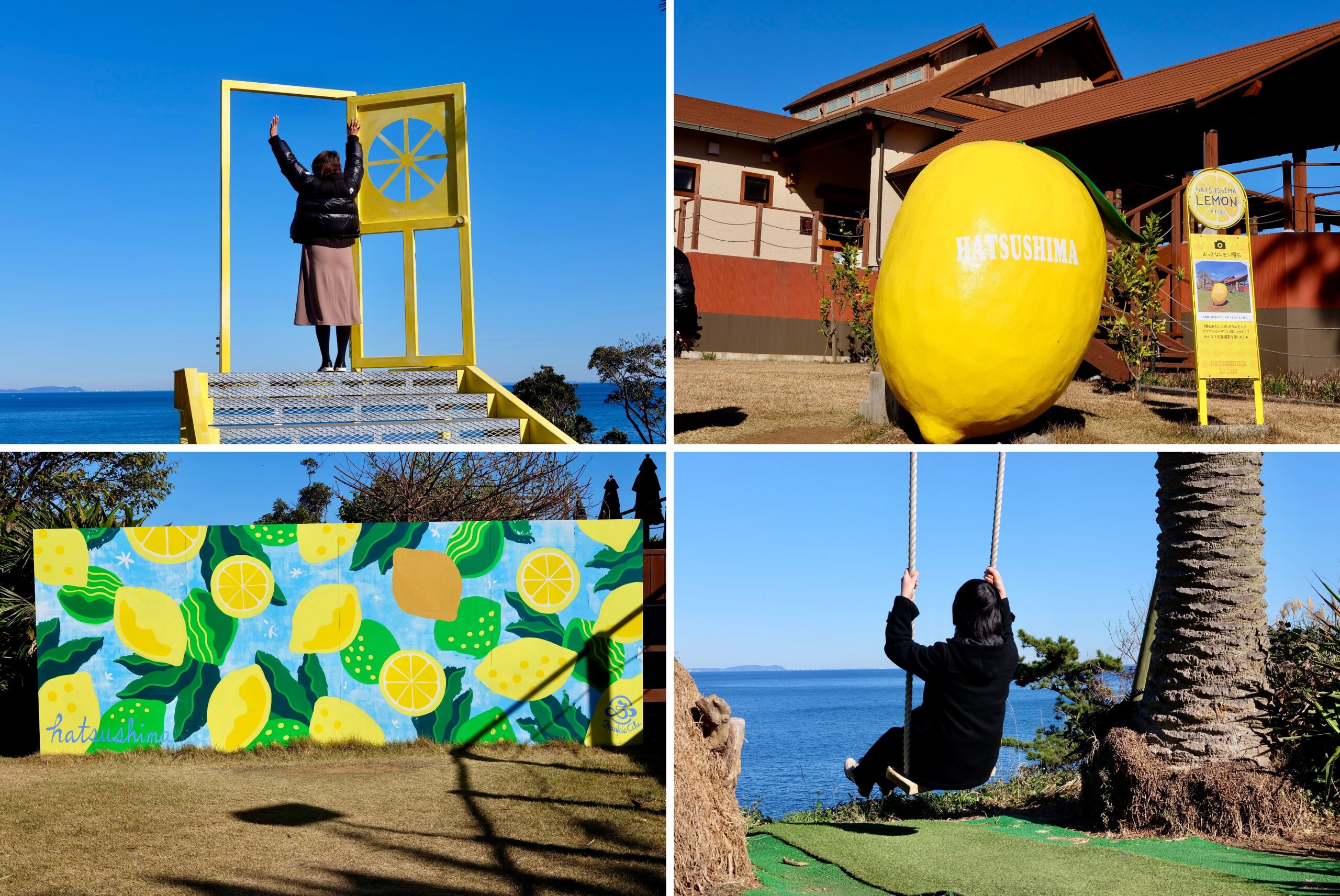 WEBで検索すると、「初島レモンまみれ」というフレーズがひときわ目立っていました。島へ来たらあちこちにレモンをテーマにしたスポットがあり、この仕掛けはだれが・・・?と聞いたところ、共同プロジェクトとして、熱海高校と富士急マリンリゾート、PICA初島、が一緒に取り組んでいるのだそうです。第1弾として2023年に高校生たちがアジアンガーデンR-Asia内にレモンの木を植樹したのを期に、レモンスポットを増やして行ったそうです。