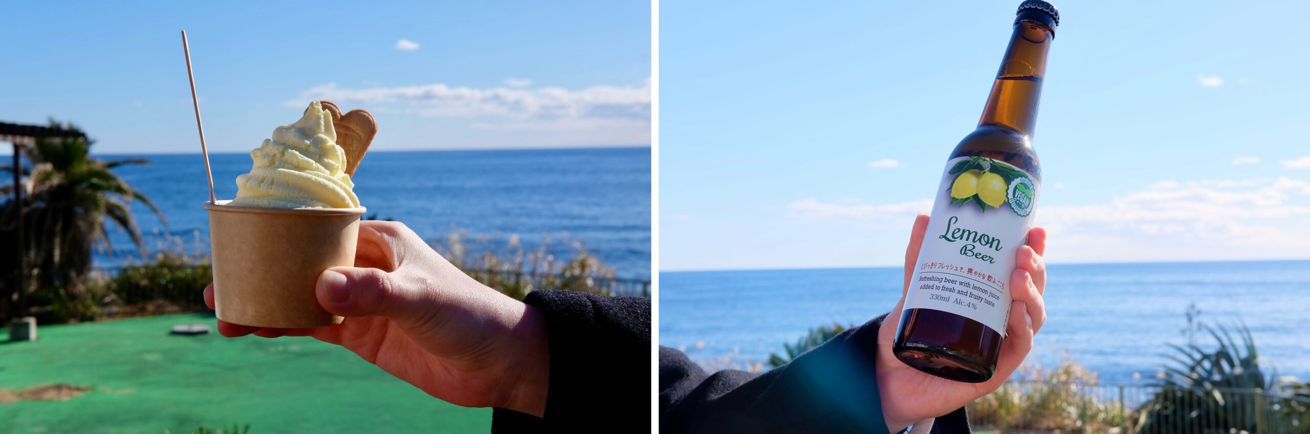 売店では、初島限定のレモンビールやサイダー、レモンソフトクリームなど、ここでしか味わえない商品が販売されています。レモンソフトクリームは、濃厚なミルクの風味に爽やかなレモンの味わいが加わった一品で、特に女性に人気があるそうです。