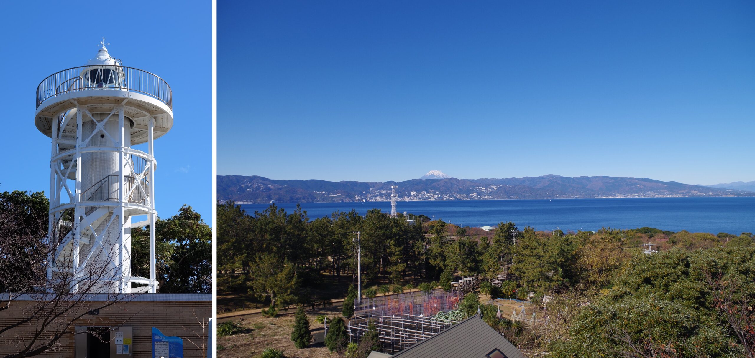 日本には、登ることができる灯台が16ヶ所あり、初島の灯台もその一つです。相模湾を渡航する船舶や操業漁船の「道しるべ」として1959年に設置・点灯しました。灯台に登ると360度パノラマが目の前に広がり、三浦半島や富士山、伊豆大島まで見渡すことができ、初島灯台資料展示館が併設されていて、灯台の歴史の年表や機材を見ることができます。