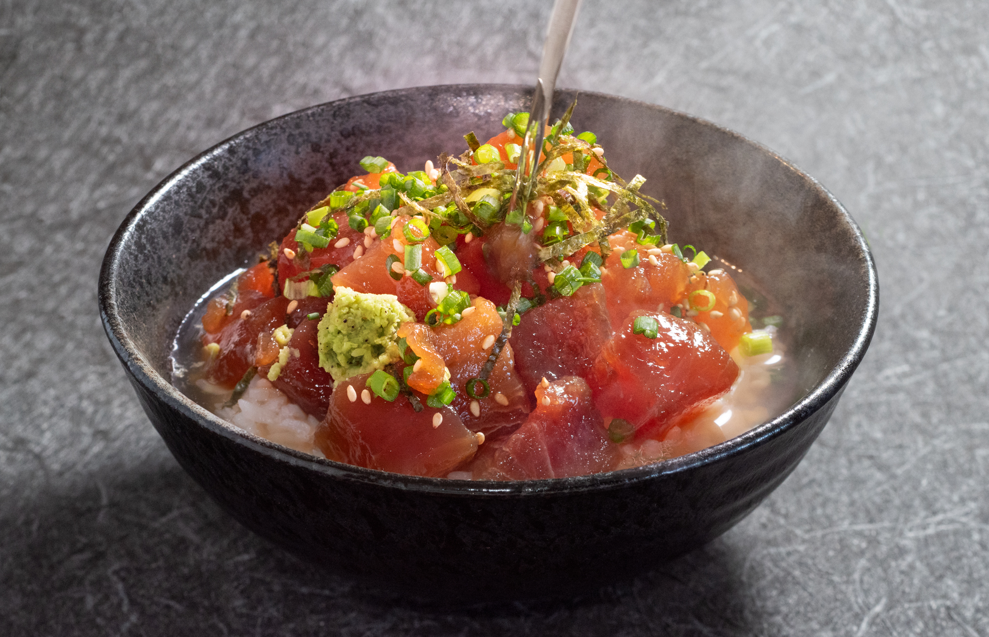 ここでは特別に、まぐろ茶漬けとマグロ丼を作ってもらった。