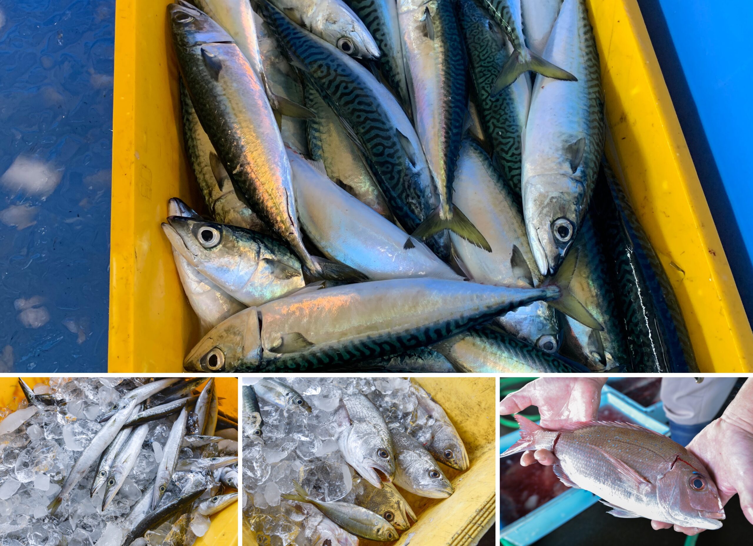 下:さばのほかにも様々な魚が水揚げされる(左:ミズカマス 中:グチ 右:マダイ)