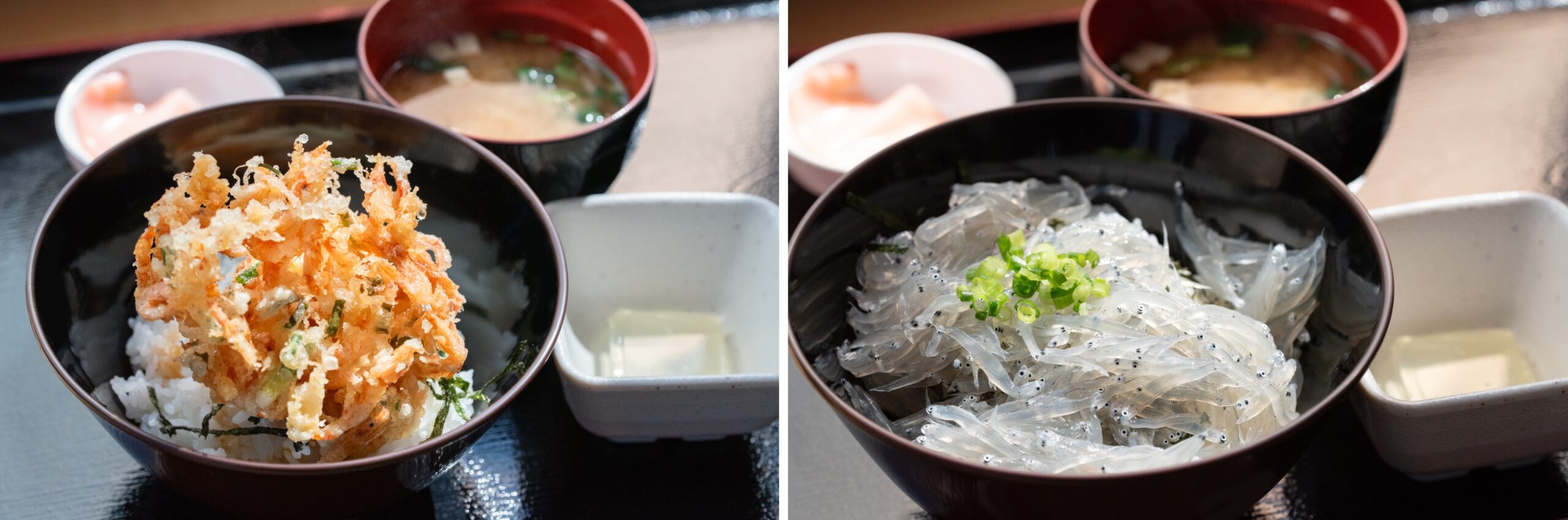 右:新鮮な生シラスを使った丼