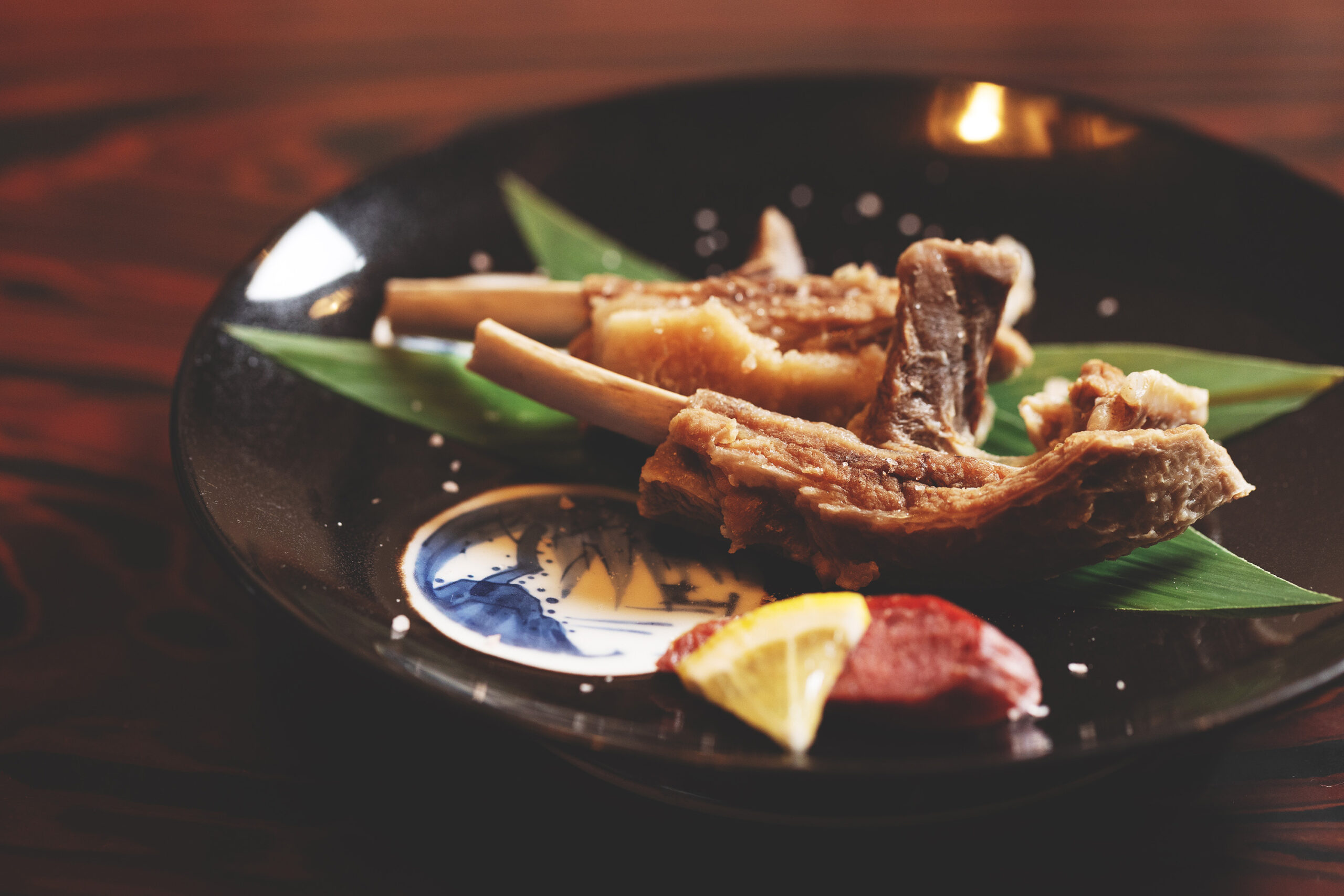全国からやって来る客の目当ては「猪鍋」だ。猪鍋というと味噌仕立てを想像するが、この店のスープは澄んだ塩味で、出汁は猪のモモ肉から。スープも肉もなんの臭みもなく、モモ肉の食感がいい。噛めば噛むほど肉の旨味が感じられ、食べ応えもある。鍋とは別に皿に盛られたロースとモモのスライス肉はしゃぶしゃぶ用で、きれいなピンク色。ロースの脂が甘く、口の中でとろけるようだ。いずれも上品な味わいで、荒々しい、臭いといったこれまでの猪肉のイメージを見事打ち破ってくれた。
