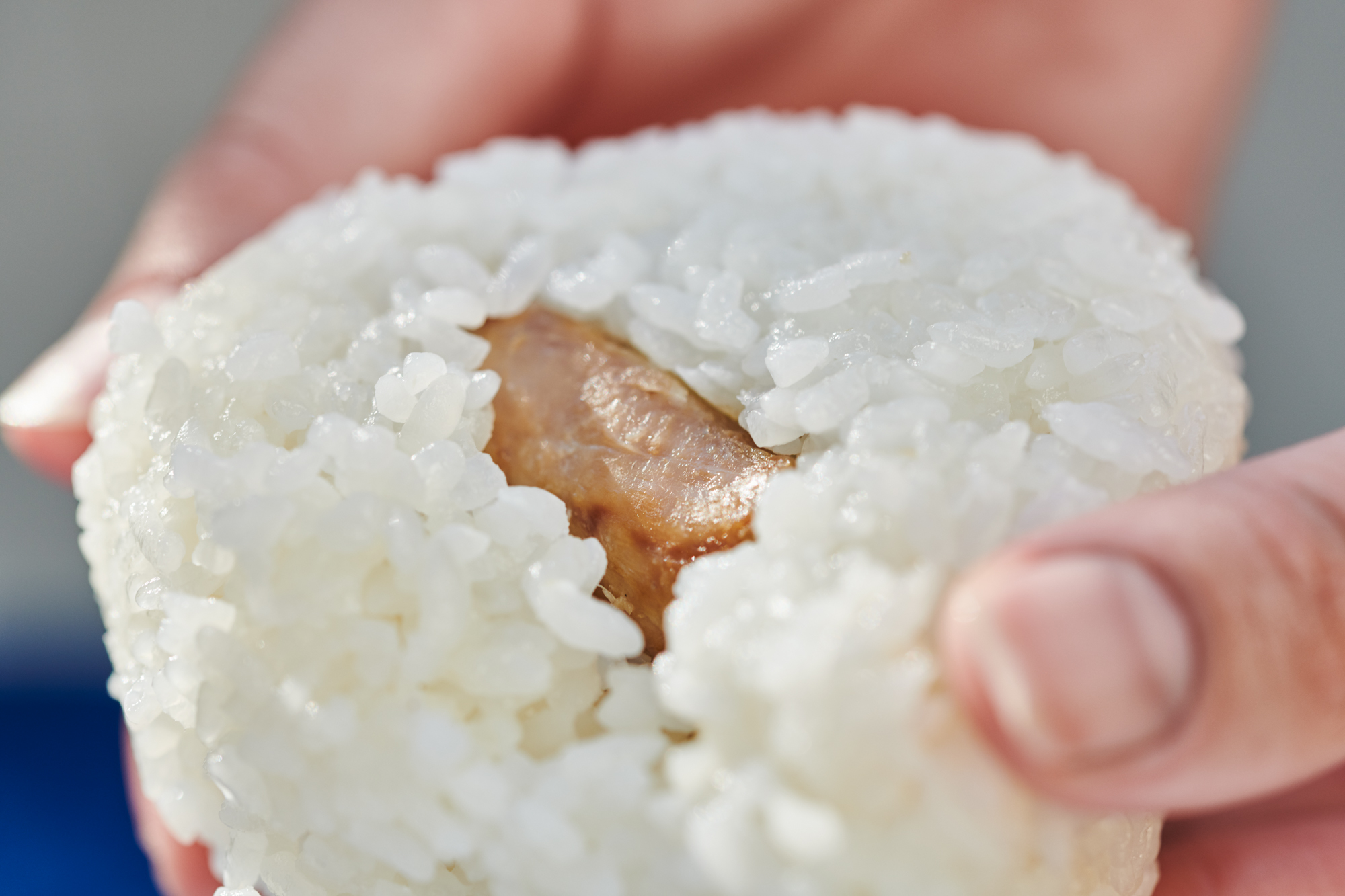 「最初はツナ缶のようにかなり細かくほぐれた状態のものができてきました。でもそれだと尾の身らしさが無かったんです。もっとゴロゴロと大きな身にした方が、マグロの肉と差別化ができると考えて、業者さんには“もっと大きくしてほしい”と何度も依頼を繰り返しました。尾の身を知ってもらいたいのに“ツナと一緒”という感想を持たれたくなかったんです。何度も試行錯誤してもらって、塩にぎりの方は、尾の身の骨の周りの1かけらを2等分したものがゴロンと入っています。」