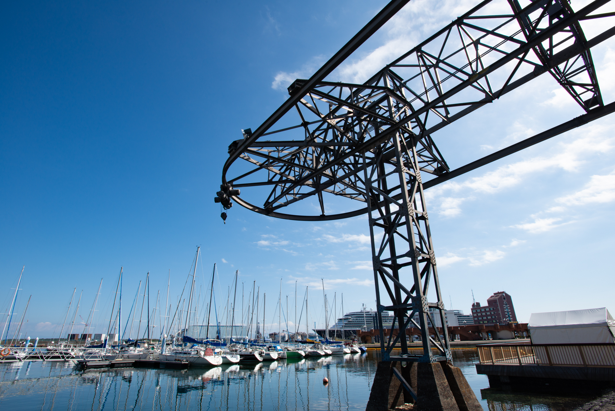 1928(昭和3)年に完成したこのクレーンは、テルファー形式の木材荷揚げ機械としては現存する唯一のものだそう。1971(昭和46)年にその役割を終えましたが2000(平成12)年に国の登録有形文化財に指定されました。