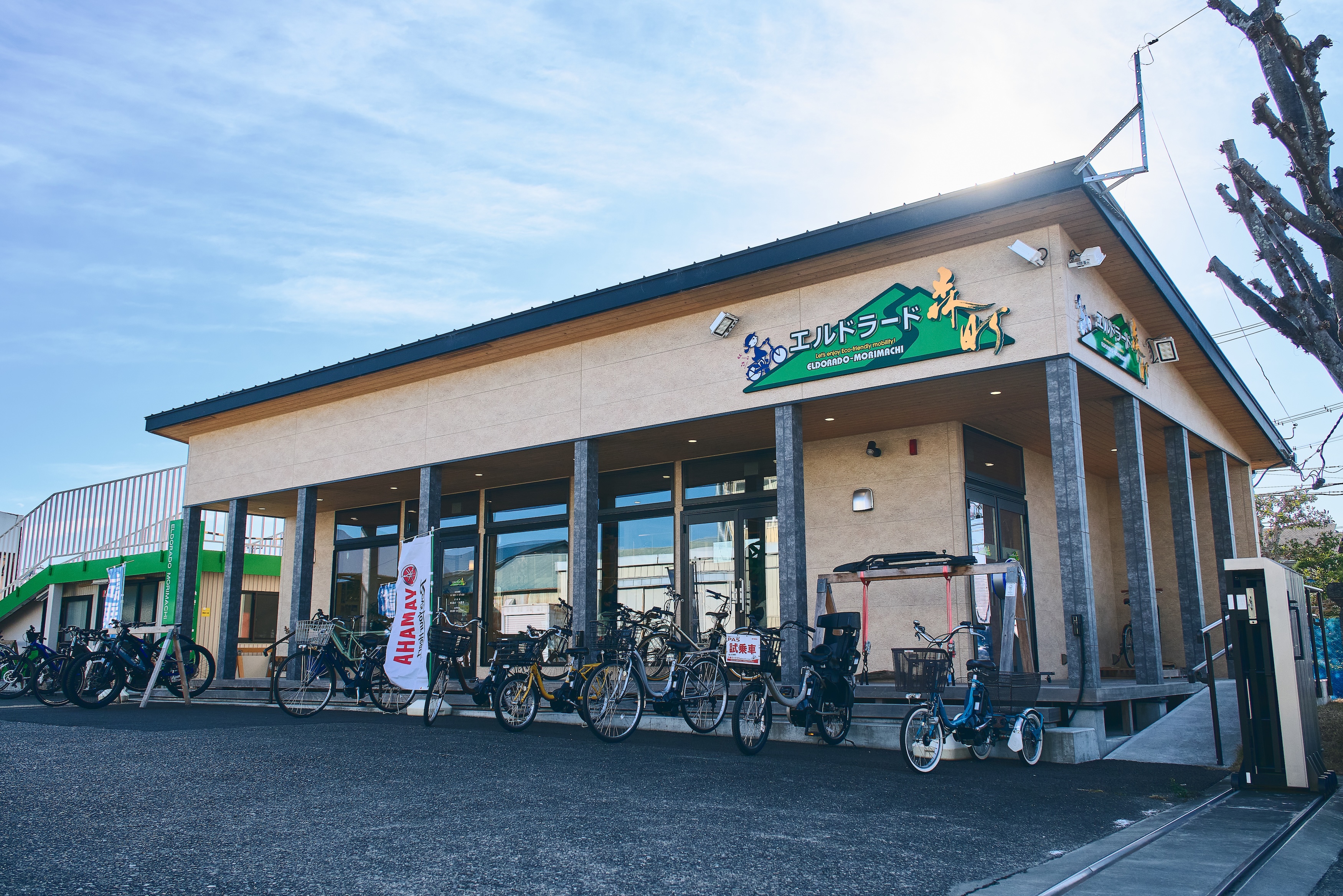 天浜線の遠州森駅からもほど近く、隣はヤマハ発動機遠州森町工場という立地の「エルドラード森町」さんは、令和4年(2022年)GWのプレオープンを経て翌年2月にグランドオープンしました。お店では、ヤマハ製の電動アシスト自転車の販売と、試乗だけではなくレンタル事業も行っています。