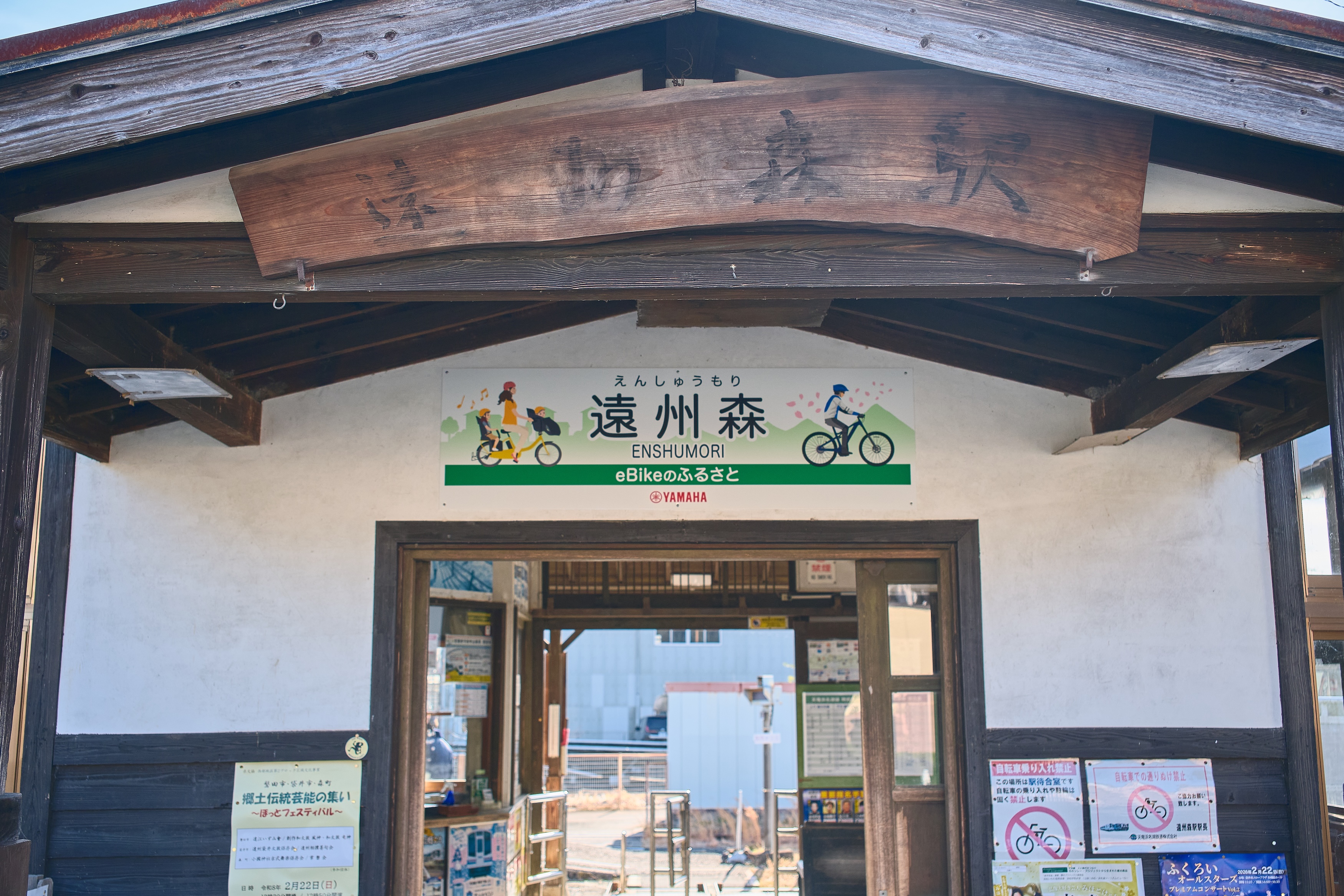 文化財の駅舎、副駅名は「eBikeのふるさと」