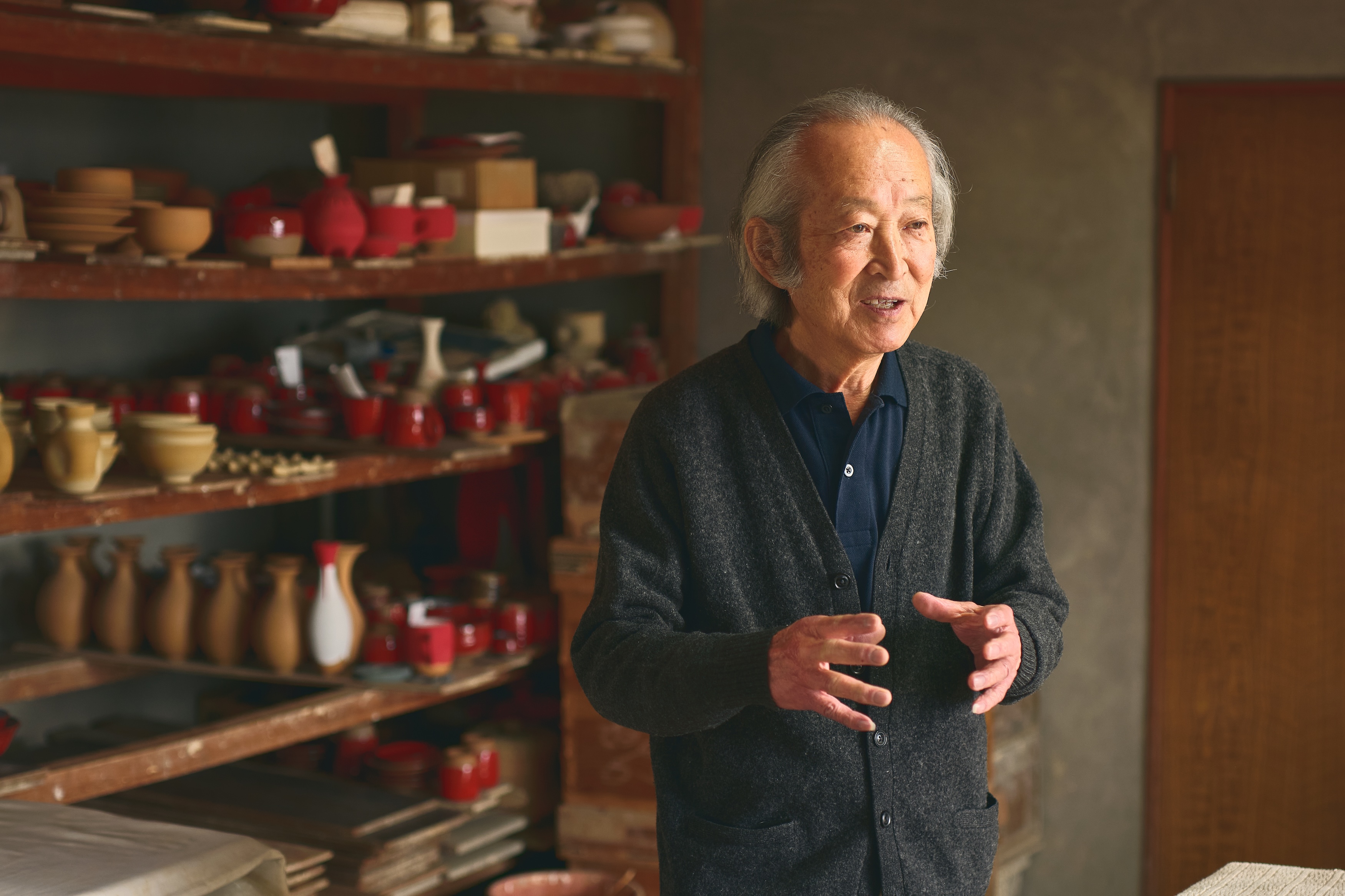 鮮やかな赤色の唯一無二の釉薬に思わず注目しがちですが、陶芸には土作りがまずは大事だとおっしゃっていました。そしてその土こそ、森山焼の特徴のひとつ。