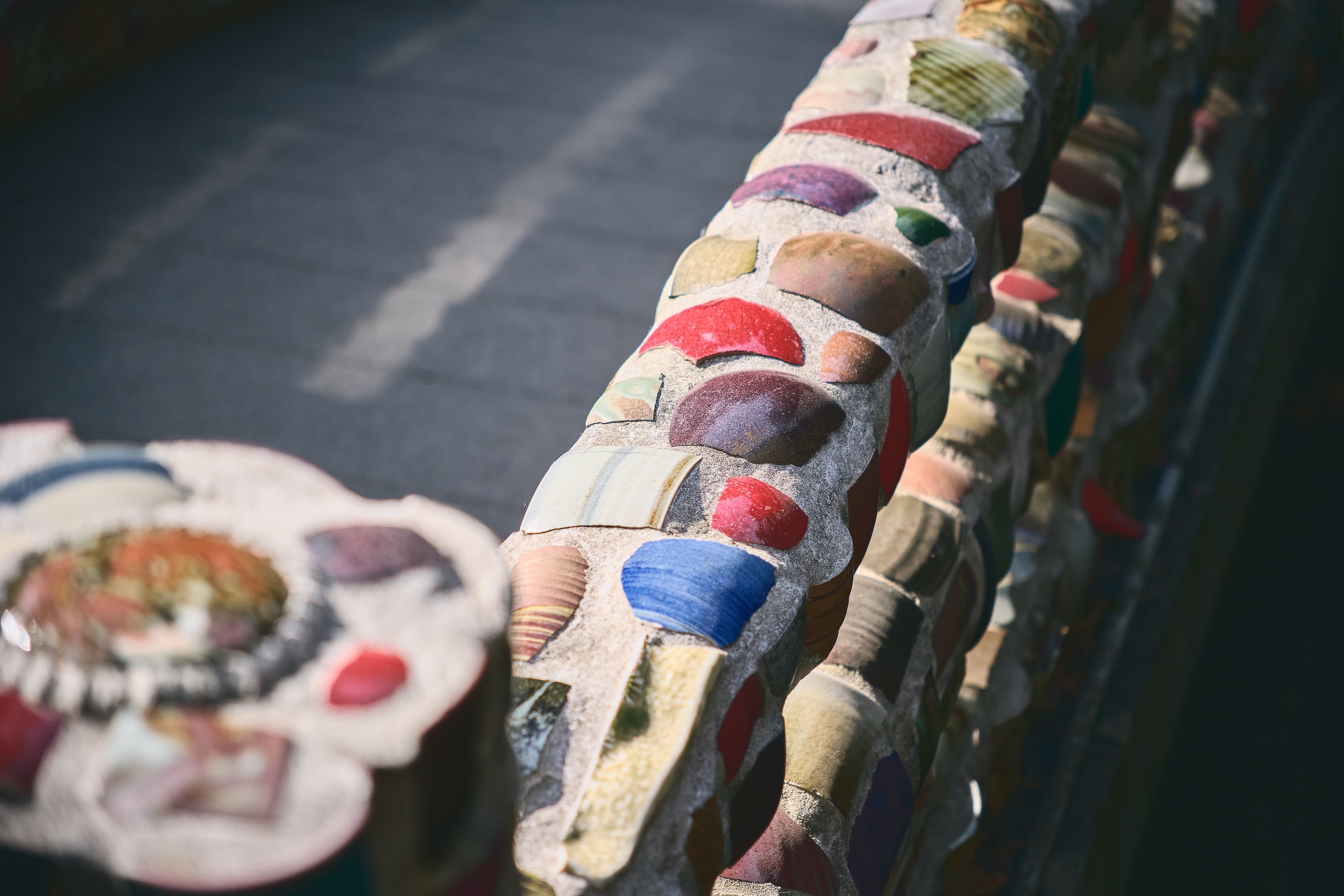 小國神社境内の事待(ことまち)池には、各陶房の焼き物のかけらを欄干に貼り付けた橋がかかっているのですが、釉薬の多彩さは、一目瞭然。これが同じ森山焼なの?と驚くかもしれません。
