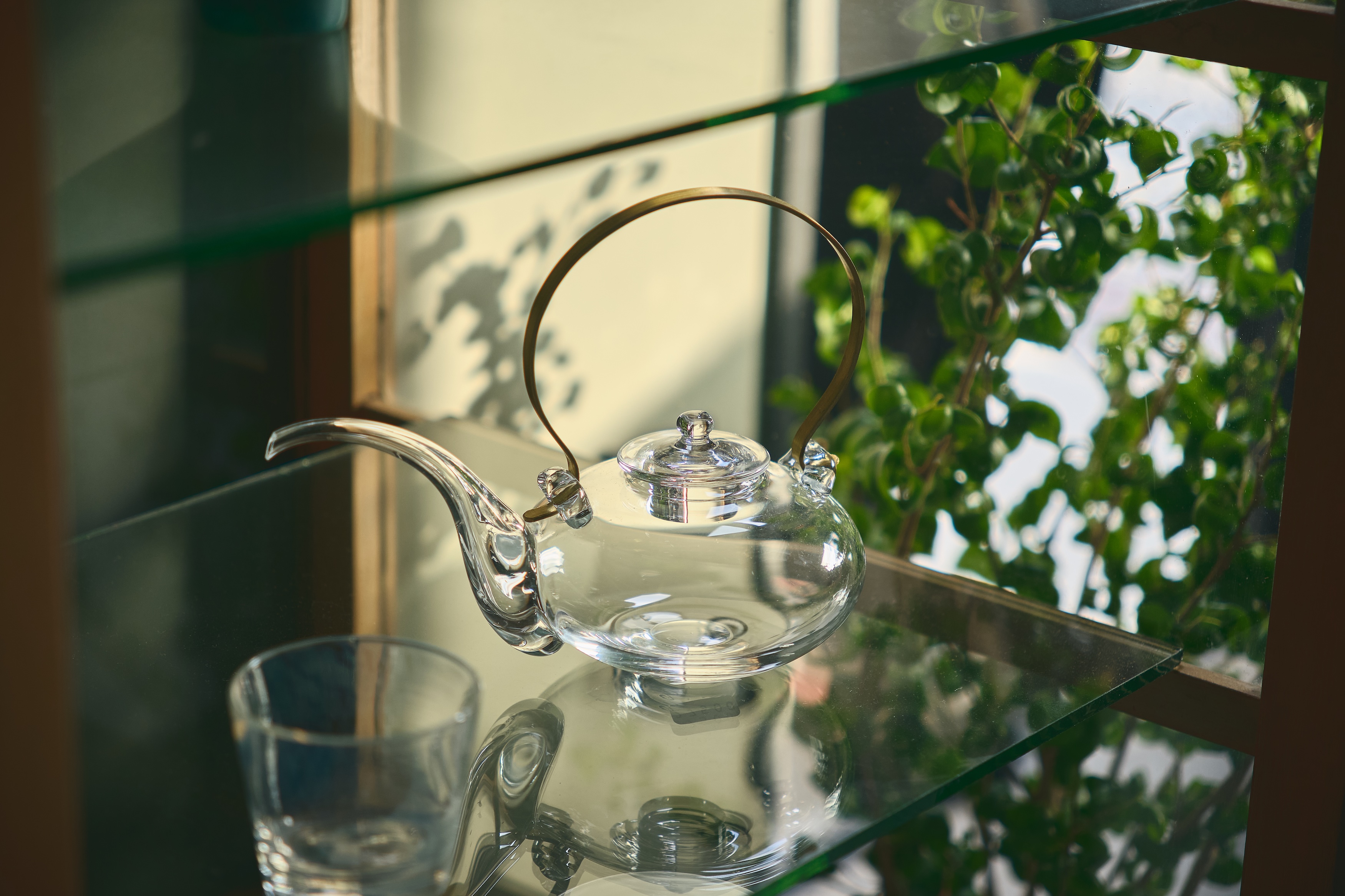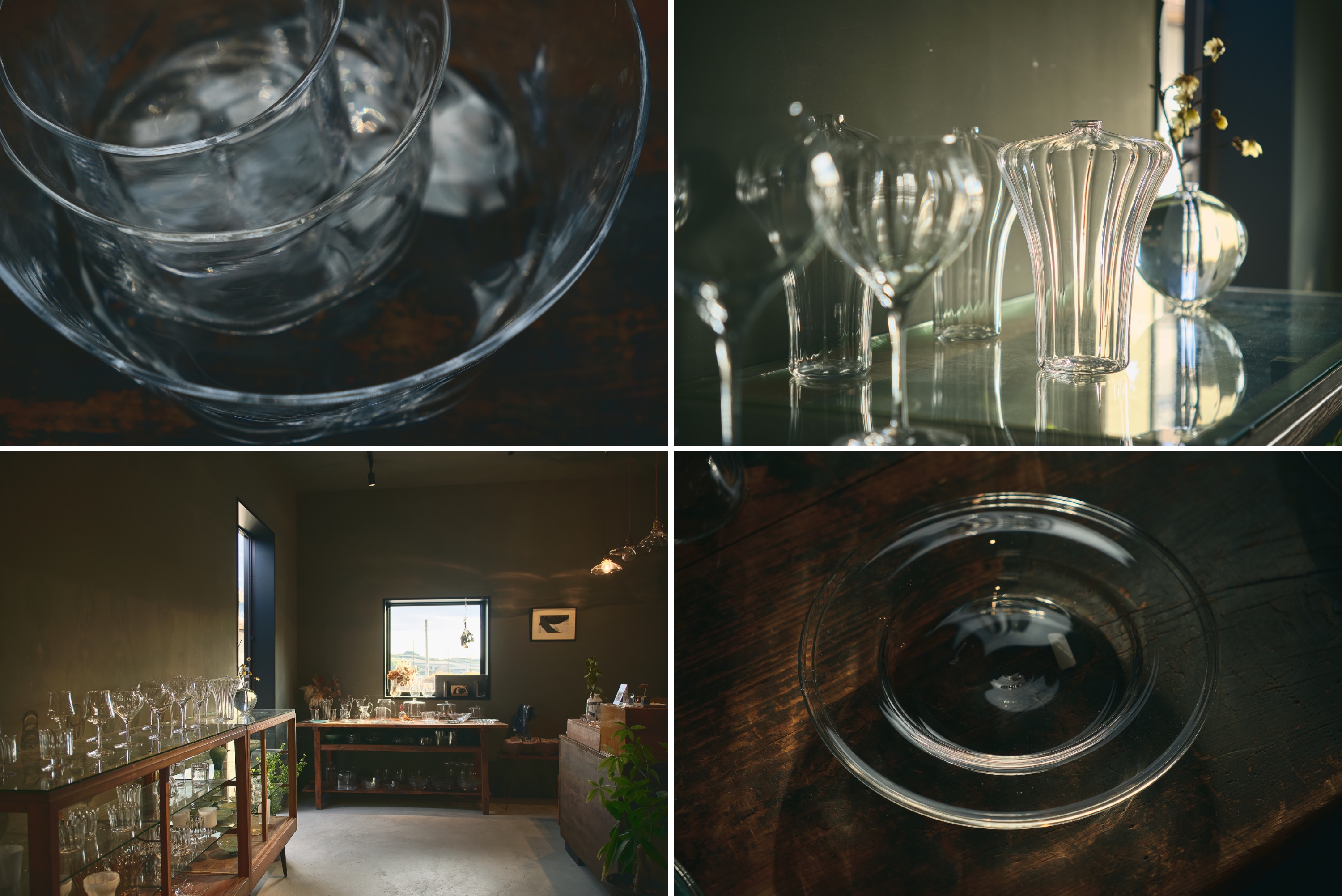 旬の果物でパフェを作ってみたくなるようなグラスは亜以さんの作品。空気が揺らいでいるかのように見えるガラスの表情が魅力的な努さんのフリーカップ等。お二人それぞれの個性がありながらも、共通しているのは透き通ったガラスの存在感と、決してでしゃばることなく、生活に寄り添いつつも、食卓に華やかさをもたらしてくれそうなたたずまいの美しさでした。
