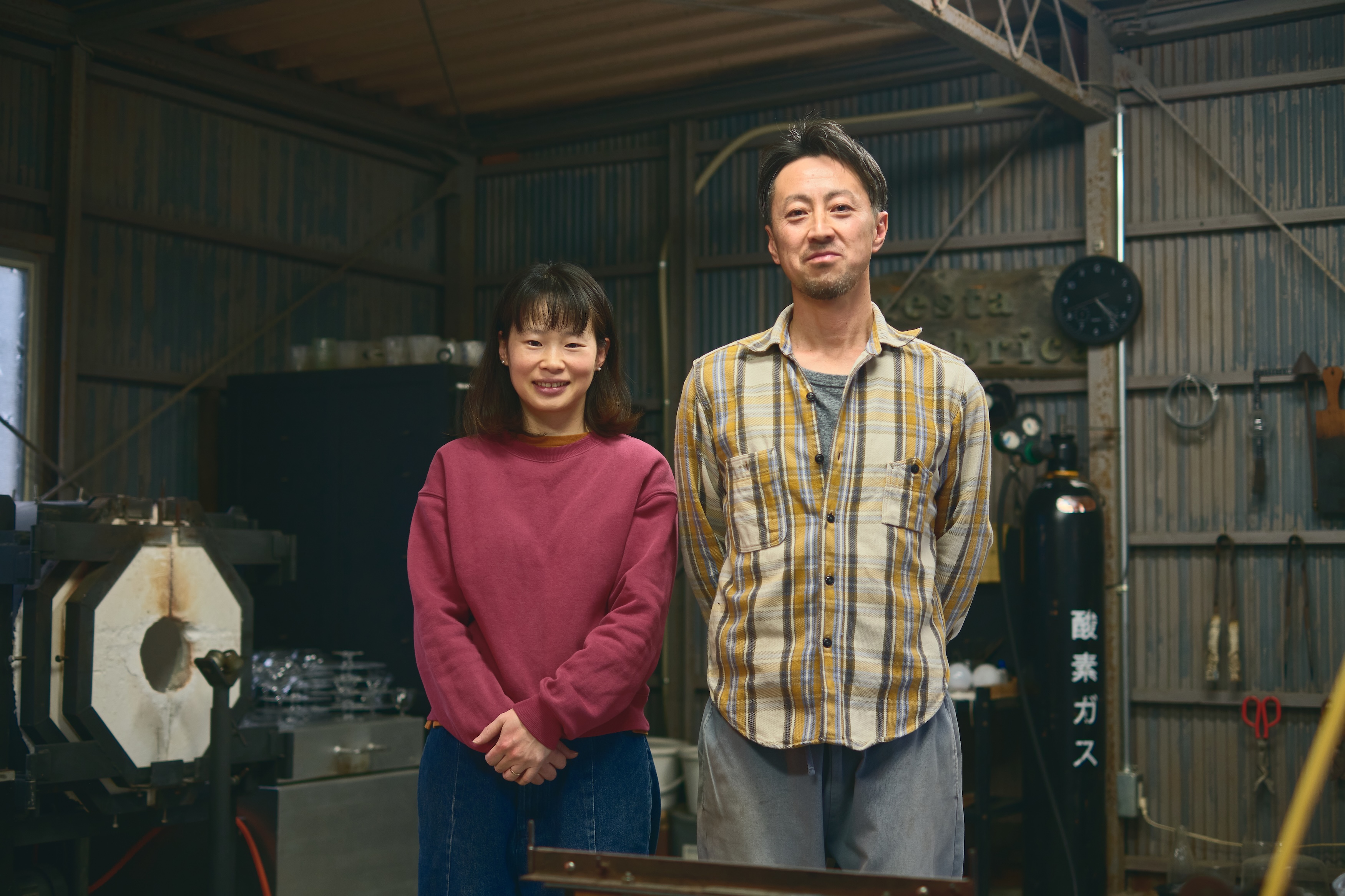 一方、亜以さんは大阪の大学でガラス工芸を学び、当時は東京の個人工房で働いていました。そこで出会ったお二人が努さんの故郷である森町に戻り、工房を立ち上げました。