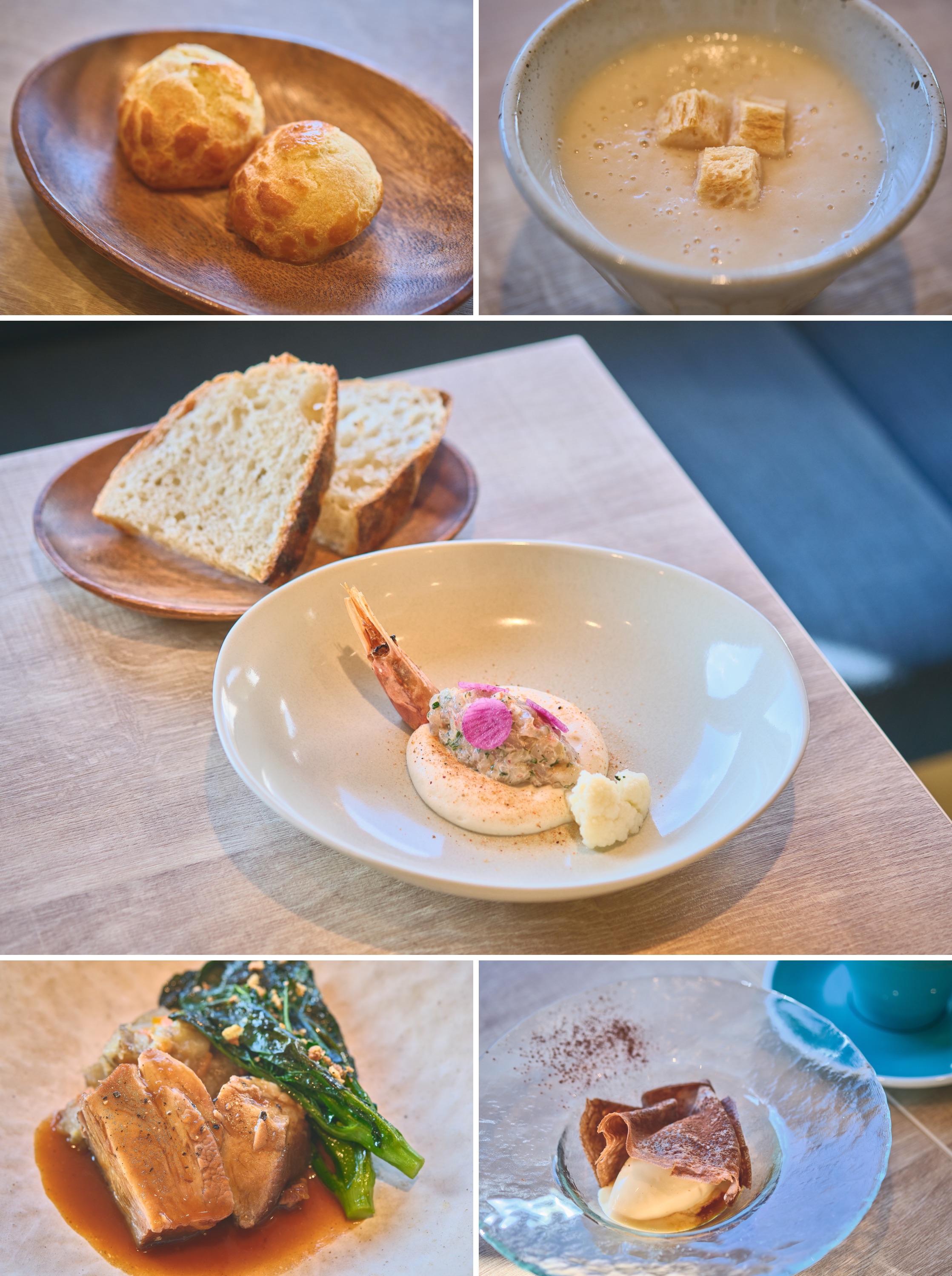 この日のおまかせランチコースは、チーズの香りが食欲をそそるグジュール(チーズを混ぜた甘くないシュー皮)から始まりました。
