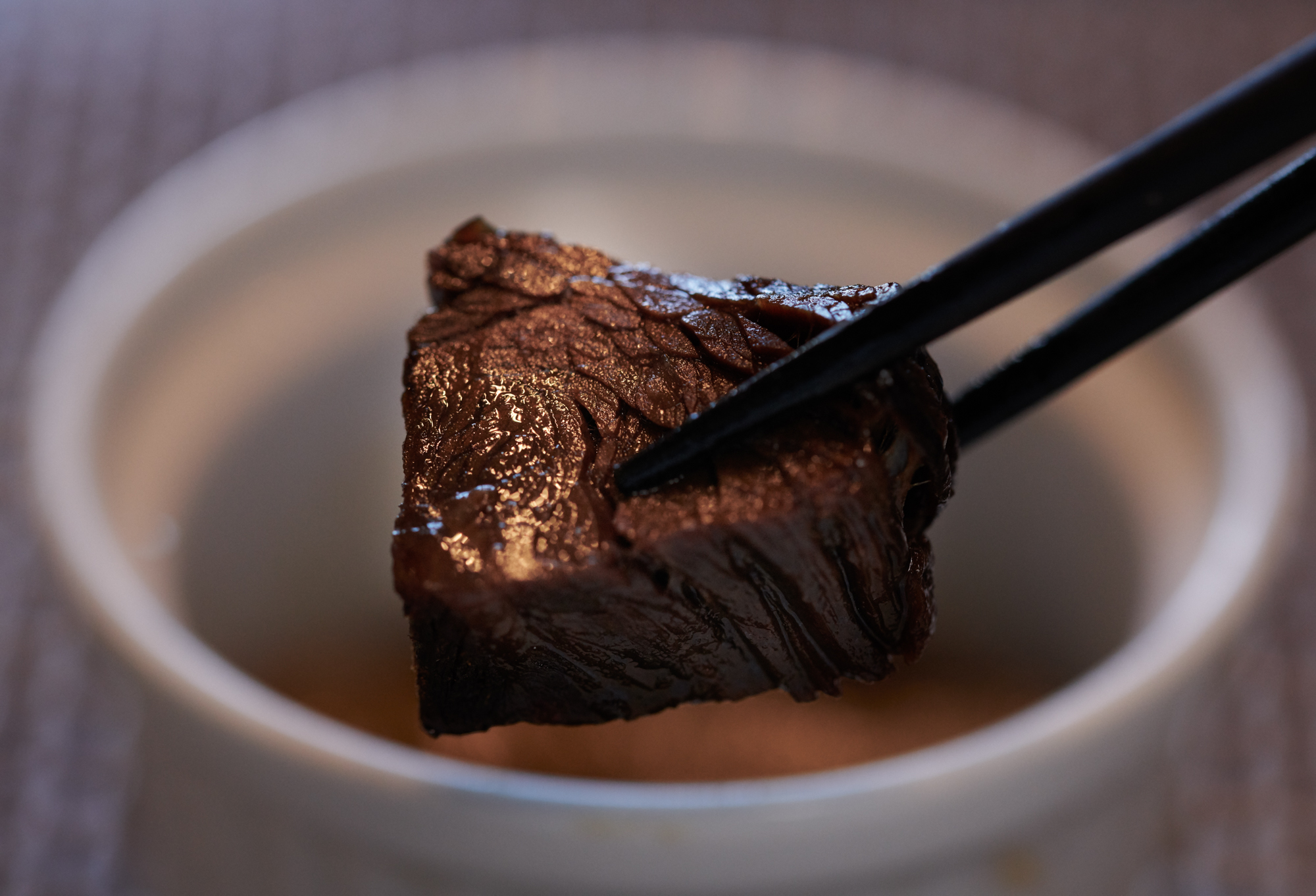 白いポット型の器に中は、真っ黒に煮込まれたお肉。その正体は、富山産のツキノワグマのトリップ(胃袋)。