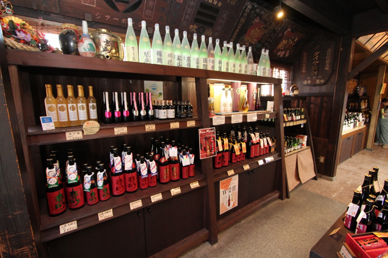 「富士高砂酒造」の酒蔵横には試飲・購入のできるスペースが併設され、こちらも観光客や地元の方で賑わいます。ロンドンで行われたコンクール「インターナショナルワインチャレンジ(IWC)2023」SAKE部門で銀メダルを受賞した「高砂 山廃純米吟醸」をはじめ、各種さまざまな地酒が所狭しと並びます。
