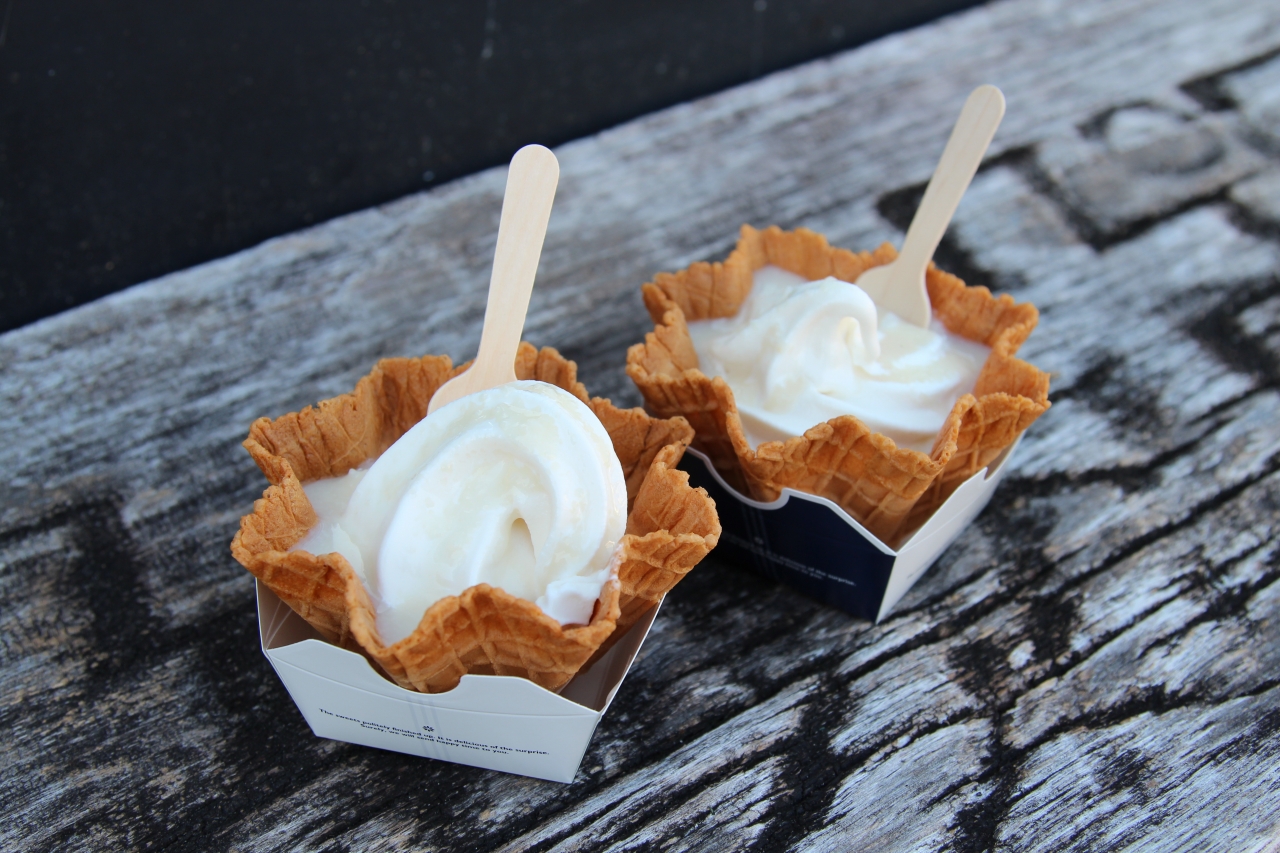 お酒が飲めない方におすすめなのは、高砂ソフトクリーム。とろっとたっぷり甘酒をかけて、濃厚な風味となめらかな口どけのソフトクリームです。ここだけでしか味わえない隠れた銘品です。