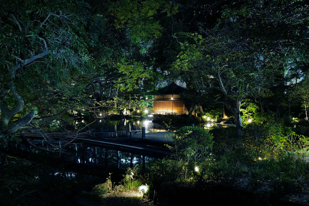 お庭は、慶喜公が作庭家・小川治兵衛(おがわじへえ)を呼び寄せ、つくらせたもの。池泉回遊式庭園になっており、四季折々の美しいお庭を眺めながら食事ができる場所になっています。夕暮れ時、お庭を眺めながらゆっくり食事を楽しんでみてはいかがでしょう。